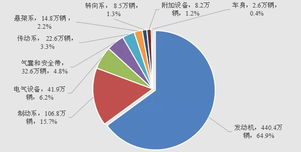 图2 2020年缺陷涉及总成召回数量分布(图片来源:国家汽车市场监督管理总局)