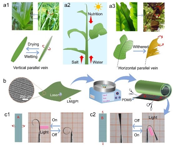 车驿时光机讯 据外媒报道,中国科学院合肥物质科学研究院(Hefei Institutes of Physical Science of the Chinese Academy of Sciences)的田兴友研究员和张献研究员领导的研究团队在光热致动器设计方面取得了突破性进展。受植物叶脉和叶肉结构的启发,该团队利用激光刻蚀在液态金属/低膨胀聚酰亚胺(LM@PI)薄膜上加工出超结构,并通过聚二甲基硅氧烷(PDMS)封装,成功制备了LM@PI/PDMS光热致动器。该策略有效解决了光热致动器在承载性能与响应速度之间难以兼容的问题。相关研究成果发表在期刊《Advanced Materials》上。