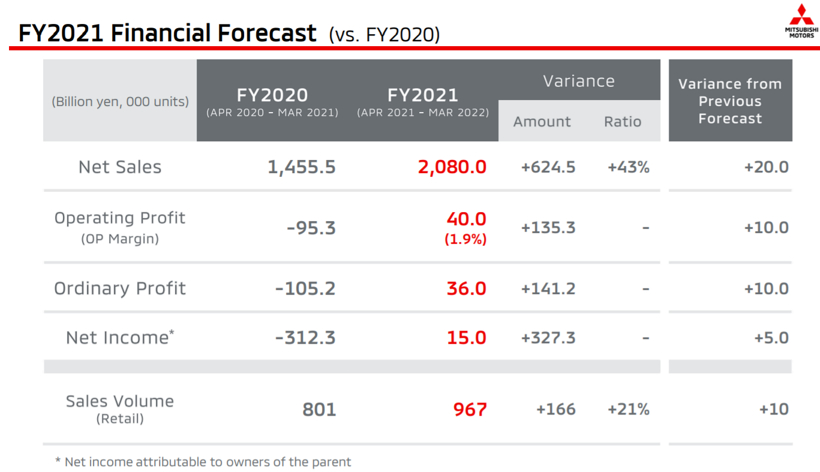 关于芯片短缺,三菱曾预计本财年将损失8万辆汽车的产量。随着芯片短缺将从秋季开始缓解,这使三菱能够弥补约一半的产量缺口。因此,该公司目前预计,整个财年的产量损失将仅为4万台。