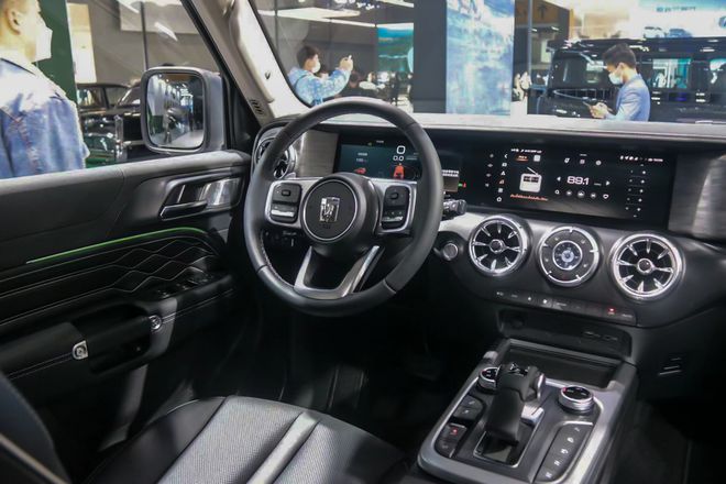 内饰方面,坦克300铁骑02的设计依旧维持了硬派越野的风格,大面积的方直轮廓线条搭配圆润的倒角,此外圆形空调出风口和圆形功能旋钮配以方菱形缝线内饰板,搭配起来更有质感,绿色装饰的增加也让车内看起来多了一丝清新感。同时,新车还配有12.3英寸双联屏等,又增加了该车的科技感。