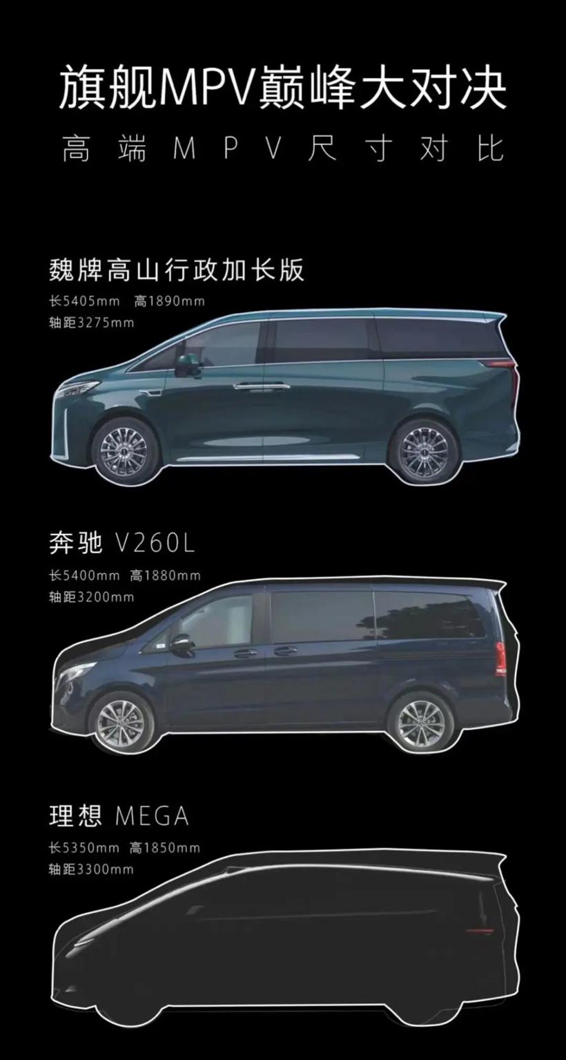 相比起理想5350mm的长度,魏牌高山行政加长版以5405mm抢走量产最大尺寸MPV的桂冠。但对于“定语冠军”理想来说,加上“纯电”一词在前面便能解决问题。