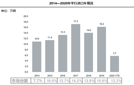 王存直言“平行进口现在没有货源,经销商就没办法继续经营,贸易商也面临同样的问题”。不过,据《研究报告》的预测,“2021年,政策有望有利于平行进口汽车。如平行进口汽车环保信息公开解决方案能如期落地,预计2021年平行进口汽车将有所恢复”。