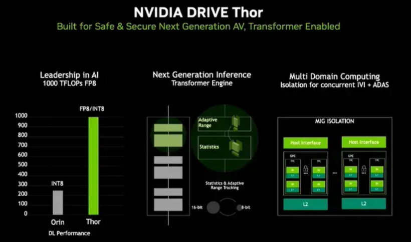 2022年,英伟达推出全新一代Thor智驾芯片,巅峰算力可达2000 TFLOPS,是Altan的2倍,Orin的8倍。这是英伟达的旗舰车载芯片,未上市就成业界卷王,关注度极高。