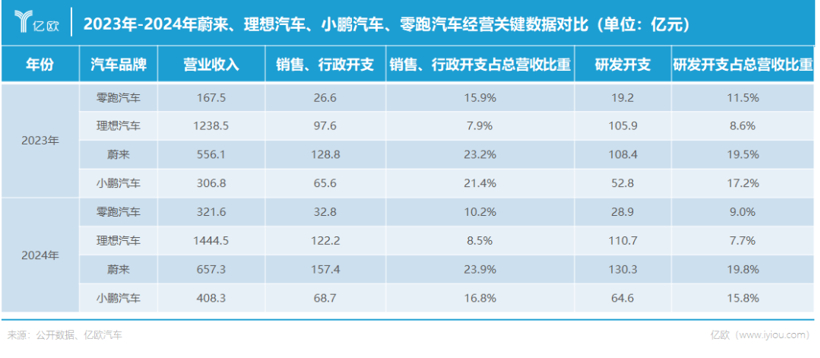 相比较而言,蔚来和小鹏汽车就显得挥霍了许多。