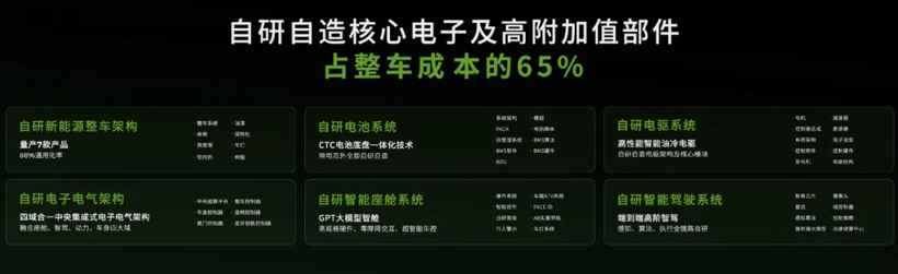 零跑汽车高级副总裁曹力将零跑能够“开心地卷”,归因于零跑实现了全域自研。公开资料显示,零跑汽车自研的整车核心电子部件以及高附加值部件占据整车成本的65%。